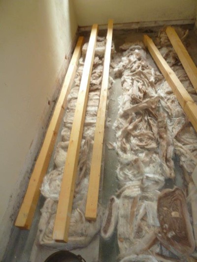 Um den Fußboden kümmerten sich Hanno und Werner. Die alten Dielen wurden entfernt und dann waren auch die Balken dran.